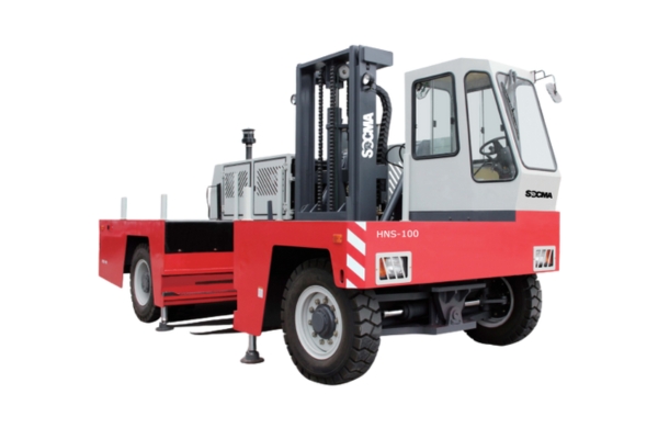 The SOCMA HNS100 Diesel Side Loader Forklift is designed for efficient loading, unloading, stacking, and transporting of long objects. With a 10-ton max lift capacity, a 3500 mm lift height, and a 80 kW R4105G22 engine, it ensures reliable performance in demanding environments.
